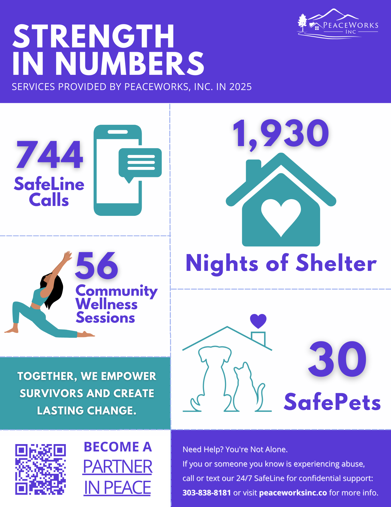365/24/7 Crisis Assistance, Support, and Voice/Text Safe Line for relationship violence and sexual assault victims, their children and pets.